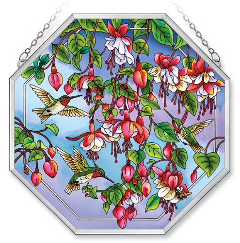 Compare Amia 5677 Window Decor Panel Hummingbird and Fuchsia Design Hand painted Glass 15 Inch W by 15 Inch L